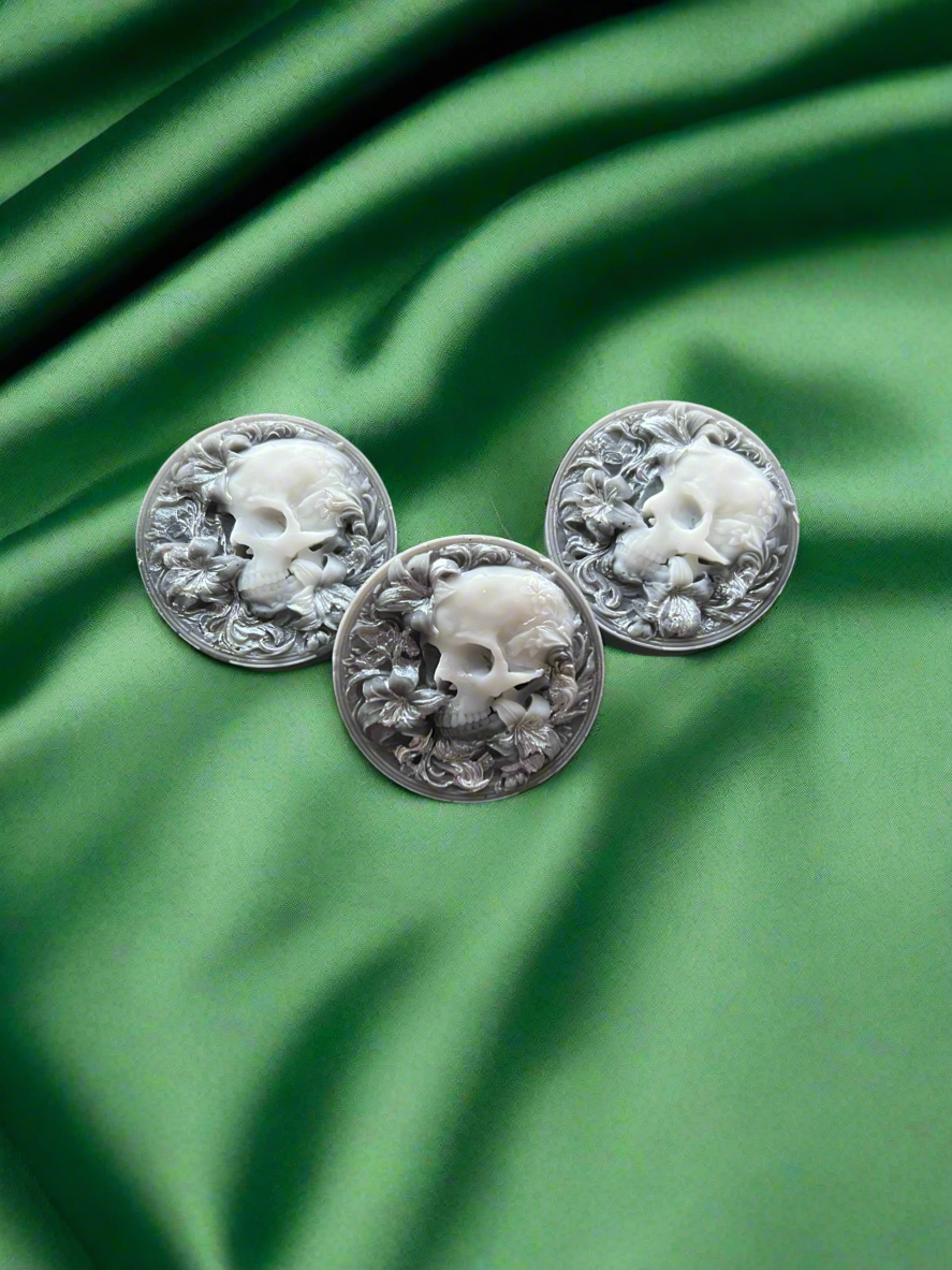 Embrace your dark elegance with these Floral Skull wax melts. Crafted for those who appreciate a macabre fantasy, each set includes three large melts that blend hauntingly beautiful floral notes with a gothic edge. Perfect for creating an atmosphere that is both sophisticated and intriguingly mysterious.