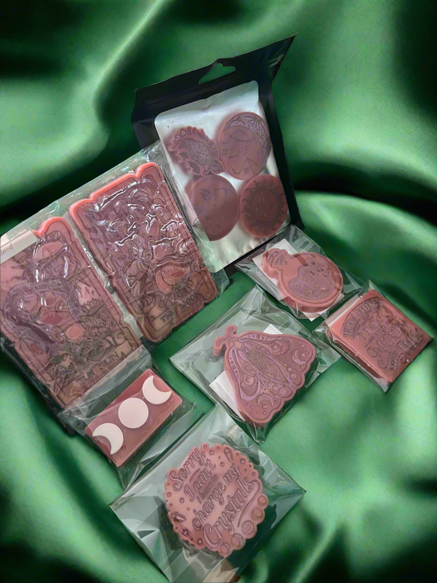 Harness the power of the moon with the Luna Phase Box. This set includes a wax melt for each phase of the lunar cycle, allowing you to manifest your desires or release thoughts that no longer serve you. This box includes our exclusive "Sorry I Can't, I'm Charging My Crystals" wax melt.